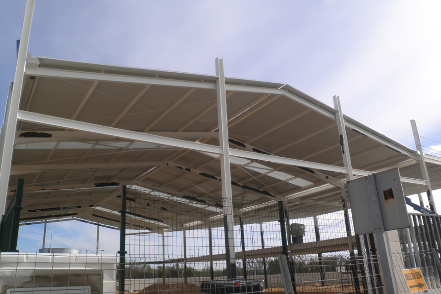 Según la normativa de seguridad contra incendios en establecimientos industriales, en las naves en las que la cubierta coincide con la colindante, debe de existir una franja de encuentro de al menos 1 metro, y que proporcione al menos la mitad de la resistencia al fuego exigida.